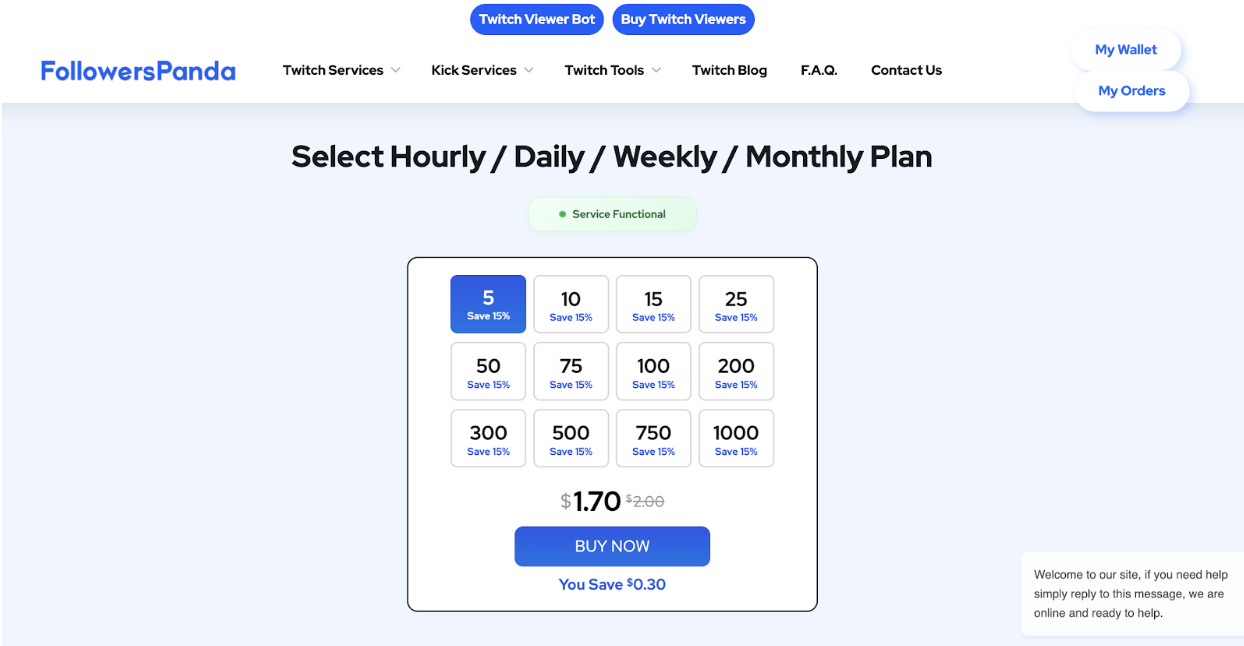 FollowersPanda is a top choice for buying twitch viewers online and is a great selection for streamers looking to buy real viewers who help make your Twitch stream look more popular and engaging. This attracts organic viewers, which is important for long-term Twitch growth and achieving sustainable organic growth. Prices start at $1.7, which is the cheapest in the market, and they also have a free trial to support streamers who want to go live.