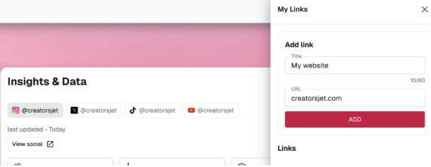 CreatorsJet allows creators to add useful links directly inside the media kit. These links can point to websites or other relevant pages.