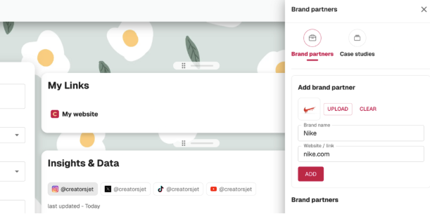 Creators can add brand partners and case studies to highlight previous collaborations. This helps build trust and gives brands context around the creator’s experience.