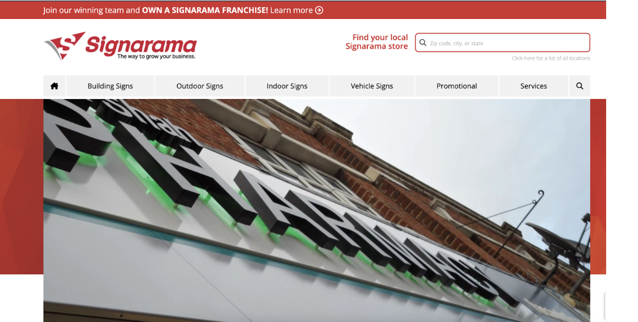 Through their global franchise network, which consists of more than 1,000 locations worldwide, Signarama offers 30 years of experience in international outdoor signage. They excel in restaurants, hotels, and retail establishments.