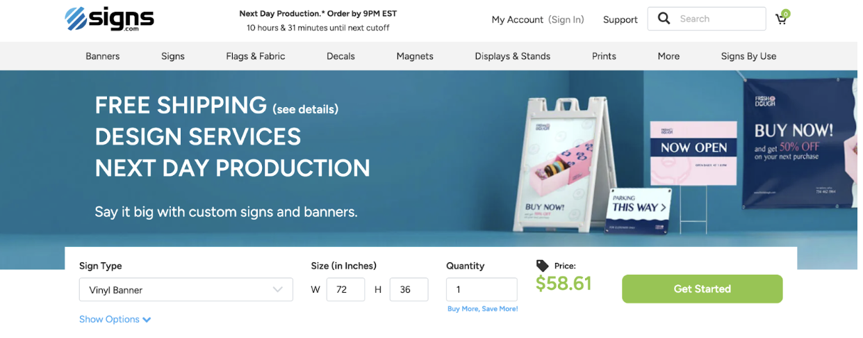 With fully online ordering, signs.com transformed outdoor signage in the UK. Create, personalize, and purchase signs all via their website, which offers clear, real-time pricing.