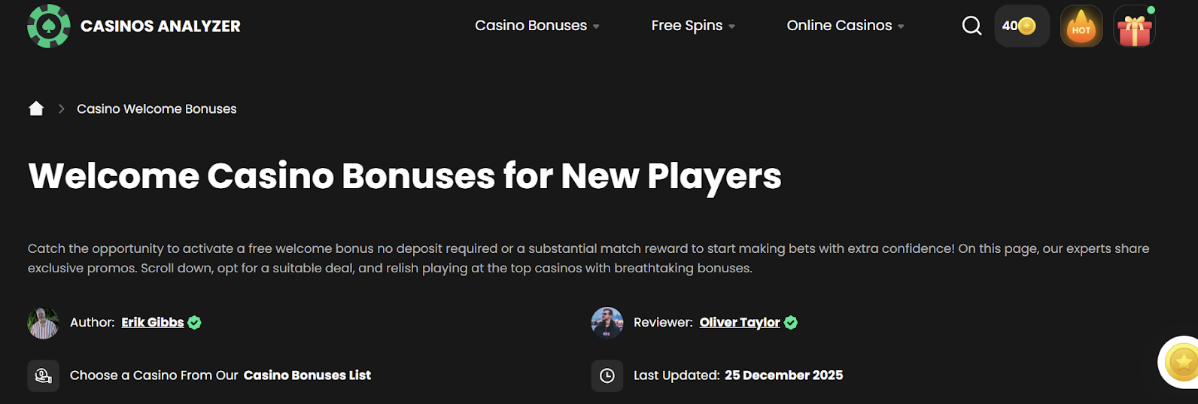 Welcome bonuses are part of how online casinos and sportsbooks attract new users, but their real value depends on the rules behind them. Conditions like wagering requirements, betting limits, and time restrictions determine the practical use of a bonus. Gambling comparison sites collect these details and show them clearly, making it easier to see whether a bonus is actually worth your attention. To simplify the choice, we have selected the strongest platforms offering the most workable welcome bonuses, outlining their conditions, strengths, and limitations.