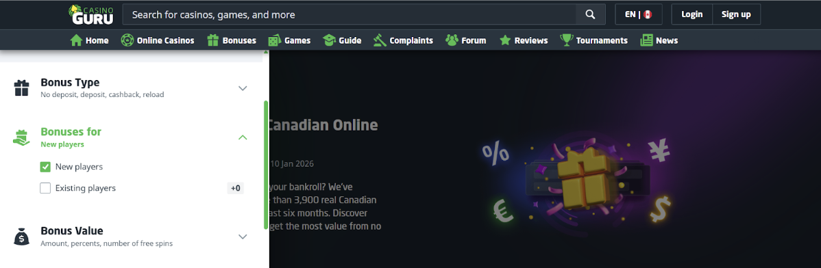 Casino Guru combines bonus comparisons with educational content and user discussions, which adds context to how bonus terms and casino practices are presented. This makes it possible to look beyond bonus size and consider how offers are applied in practice and how casinos behave toward players.