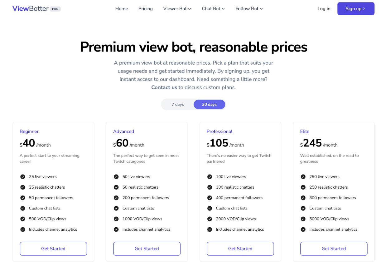Verdict : No advanced features, no monthly/weekly plan for Twitch viewbot services.